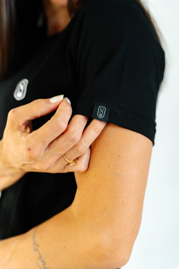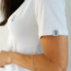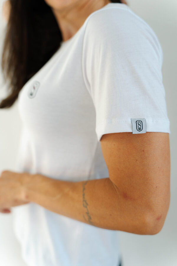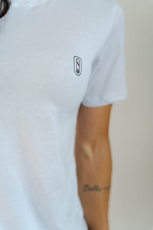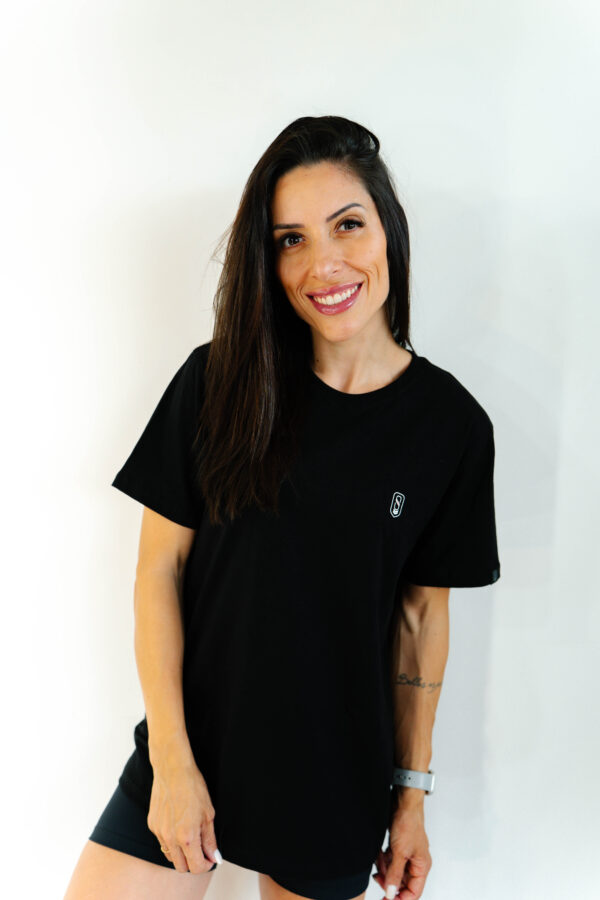 Com uma estampa totalmente minimalista tanto na frente quanto nas costas, ela é produzida com algodão certificado BCI e certificação OEKO-TEX® Standard 100