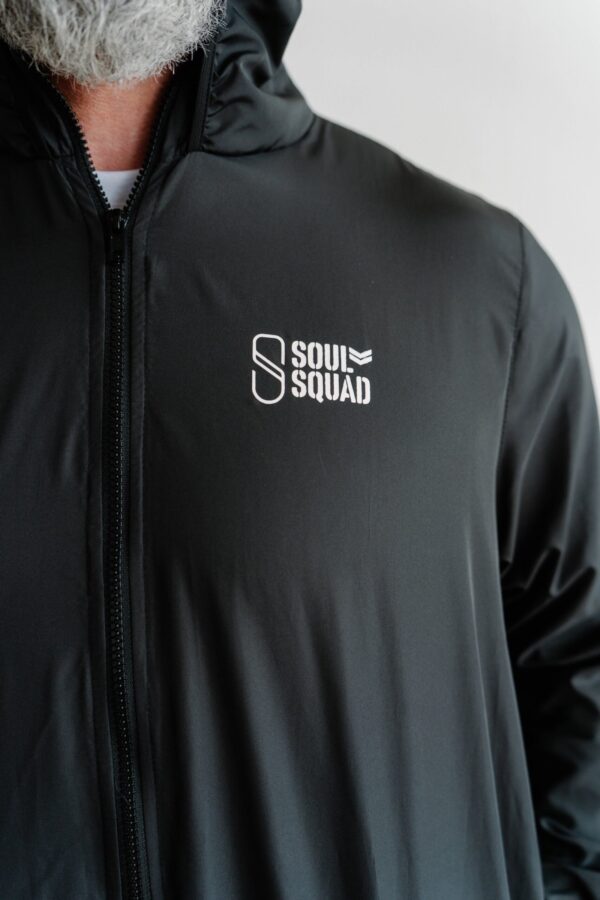 O corta vento Soul Squad possui a modelagem de gola alta, zíper frontal e capuz bem fechado. Confeccionado em tecido leve com secagem rápida. Possui bolsos laterais funcionais.