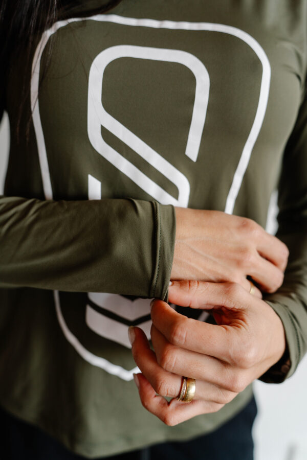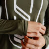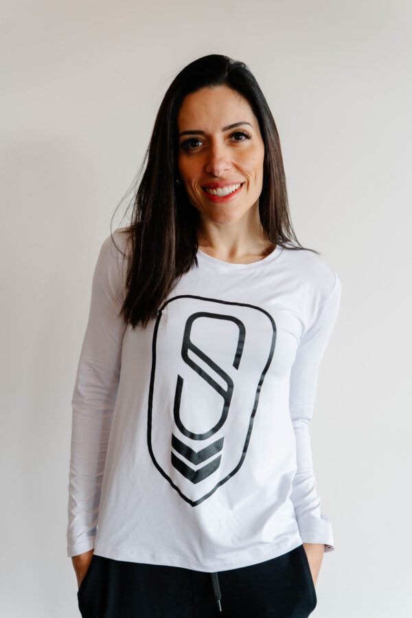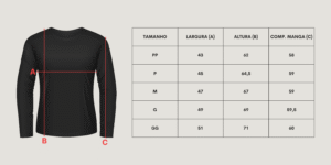 O tecido da manga longa é o Luar, uma malha em poliamida com elastano, que promove bom caimento, fluidez e elasticidade nos dois sentidos. Ao primeiro toque tem um efeito gelado na malha, mas se torna térmica ao vestir, por manter a temperatura corporal e evitar a passagem de vento. Apresenta tecnologia DRY que auxilia a secagem rápida da malha.