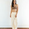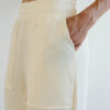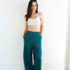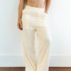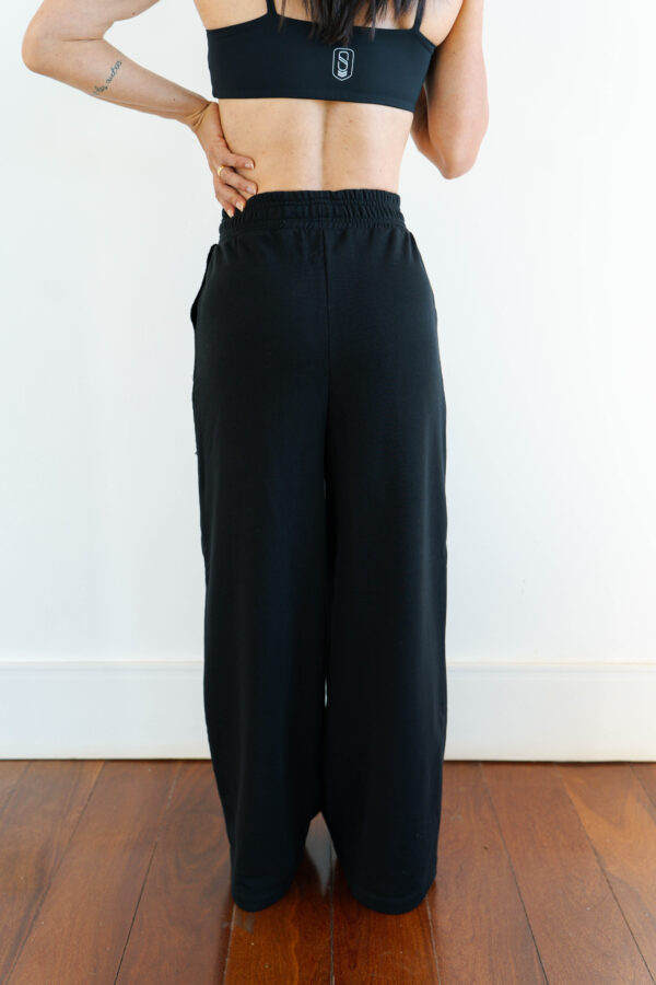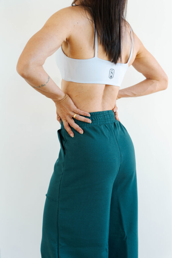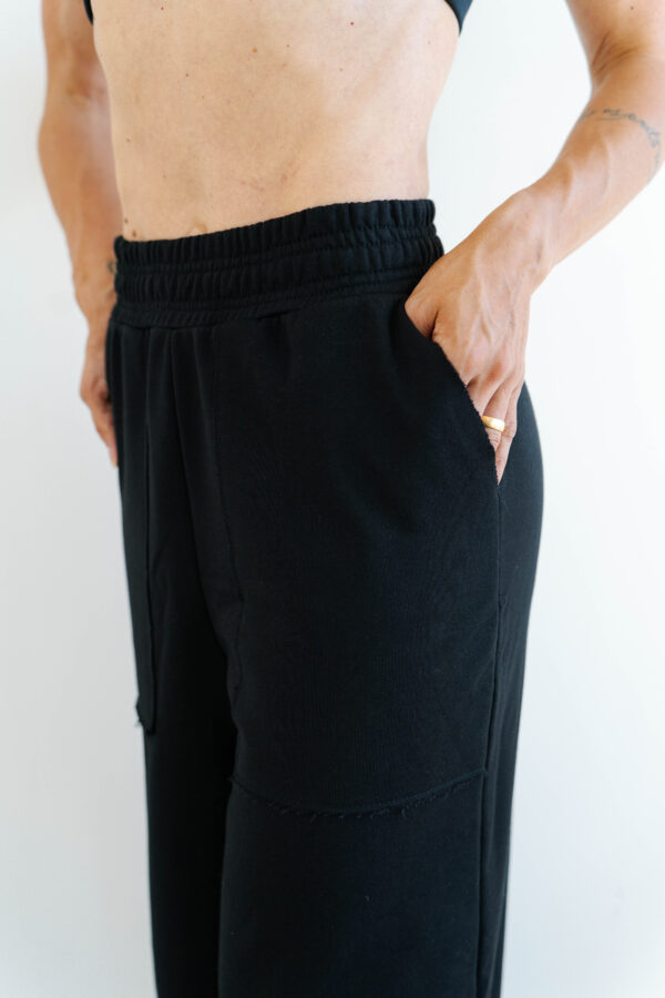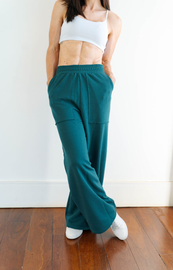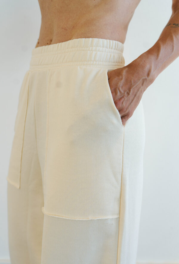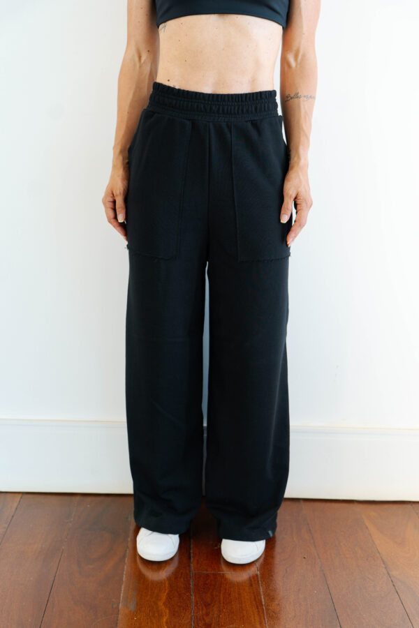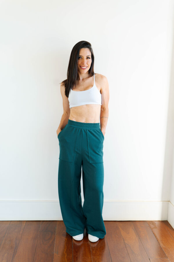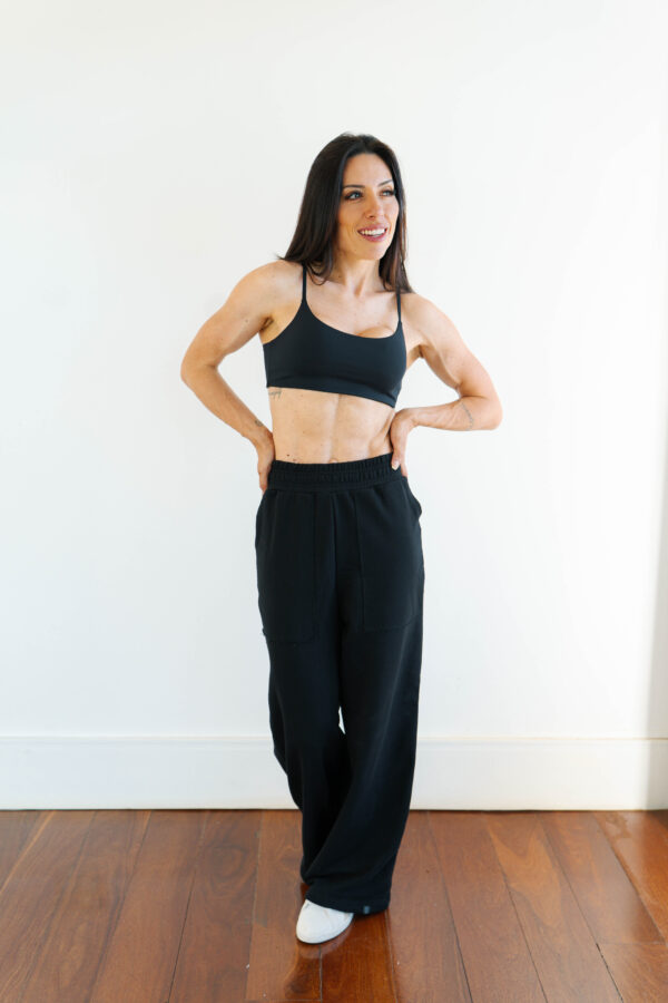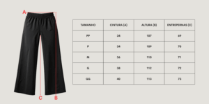 A nossa Wide Leg é confeccionada com algodão penteado no lado externo e, no avesso, fio de mistura íntima de algodão com poliéster, garantindo mais estabilidade, conforto e durabilidade.
